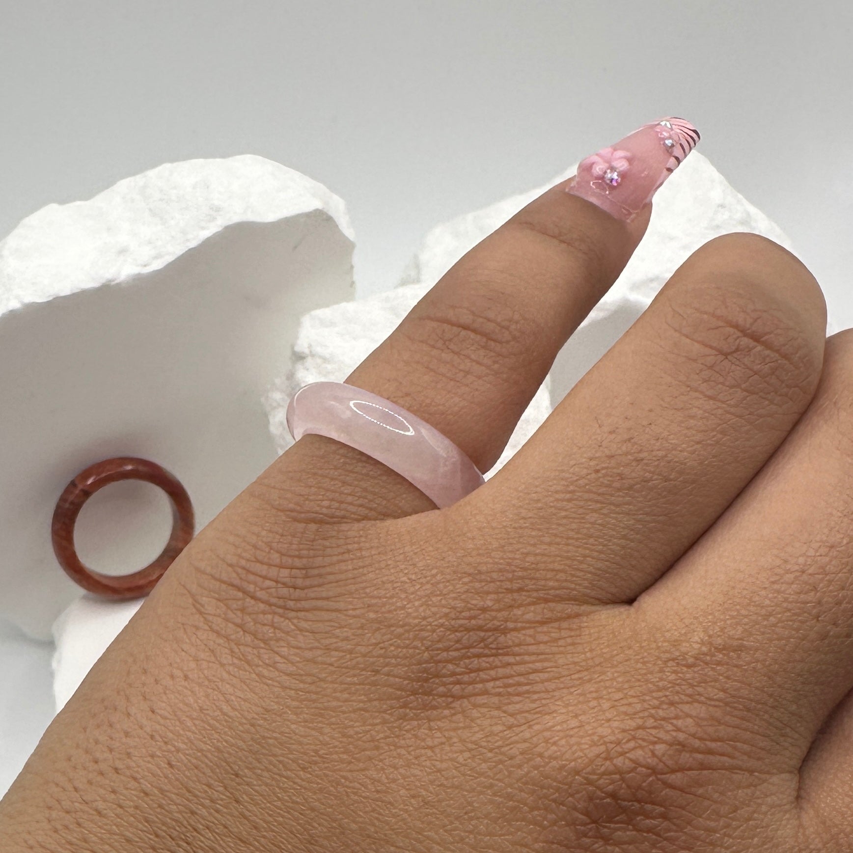 Rings come in sizes 5–11 and the size is randomly selected. Each piece is unique in color and pattern, making each order a fun surprise!