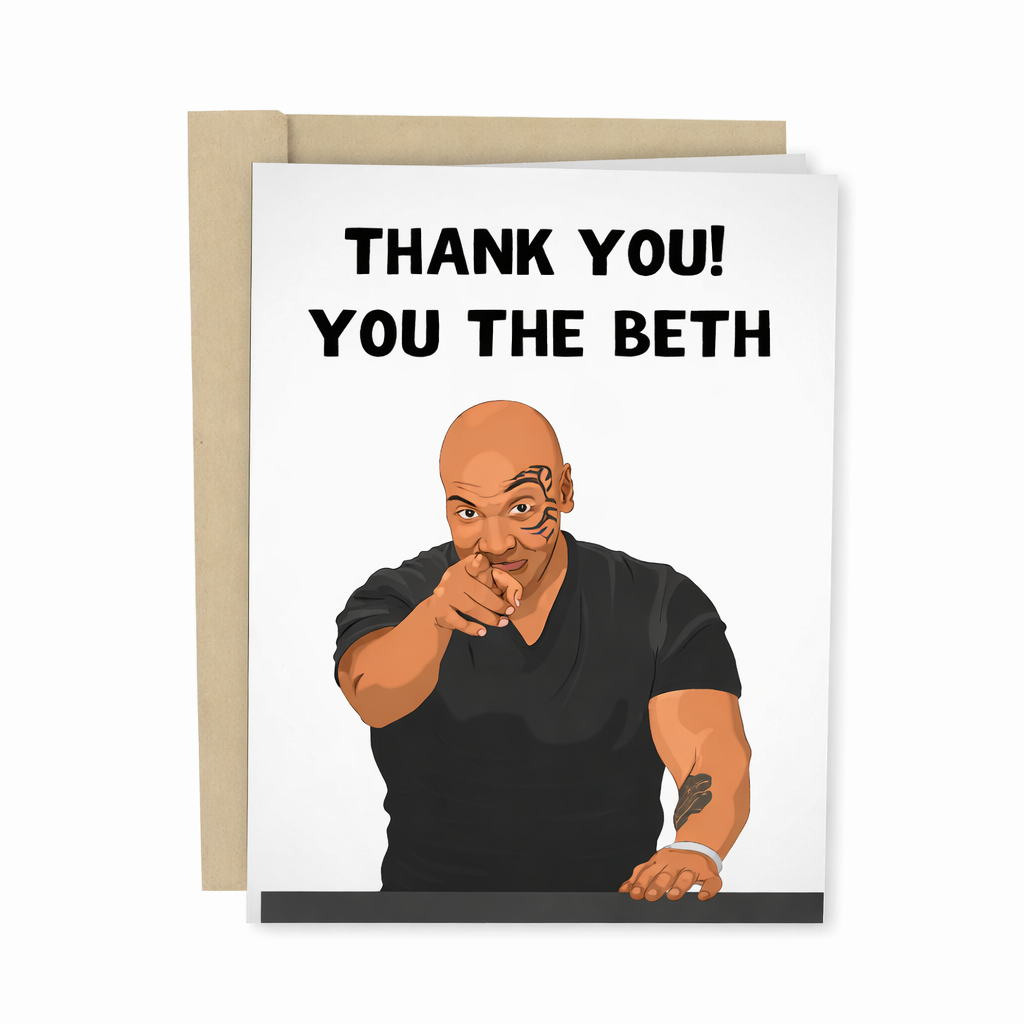 Say thanks with humor and personality. This playful card features a bold illustration and the cheeky message “Thank You! You the Beth” making it perfect for someone who truly is the best — with a funny twist that’s sure to get a laugh.
