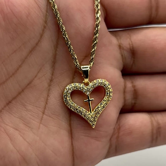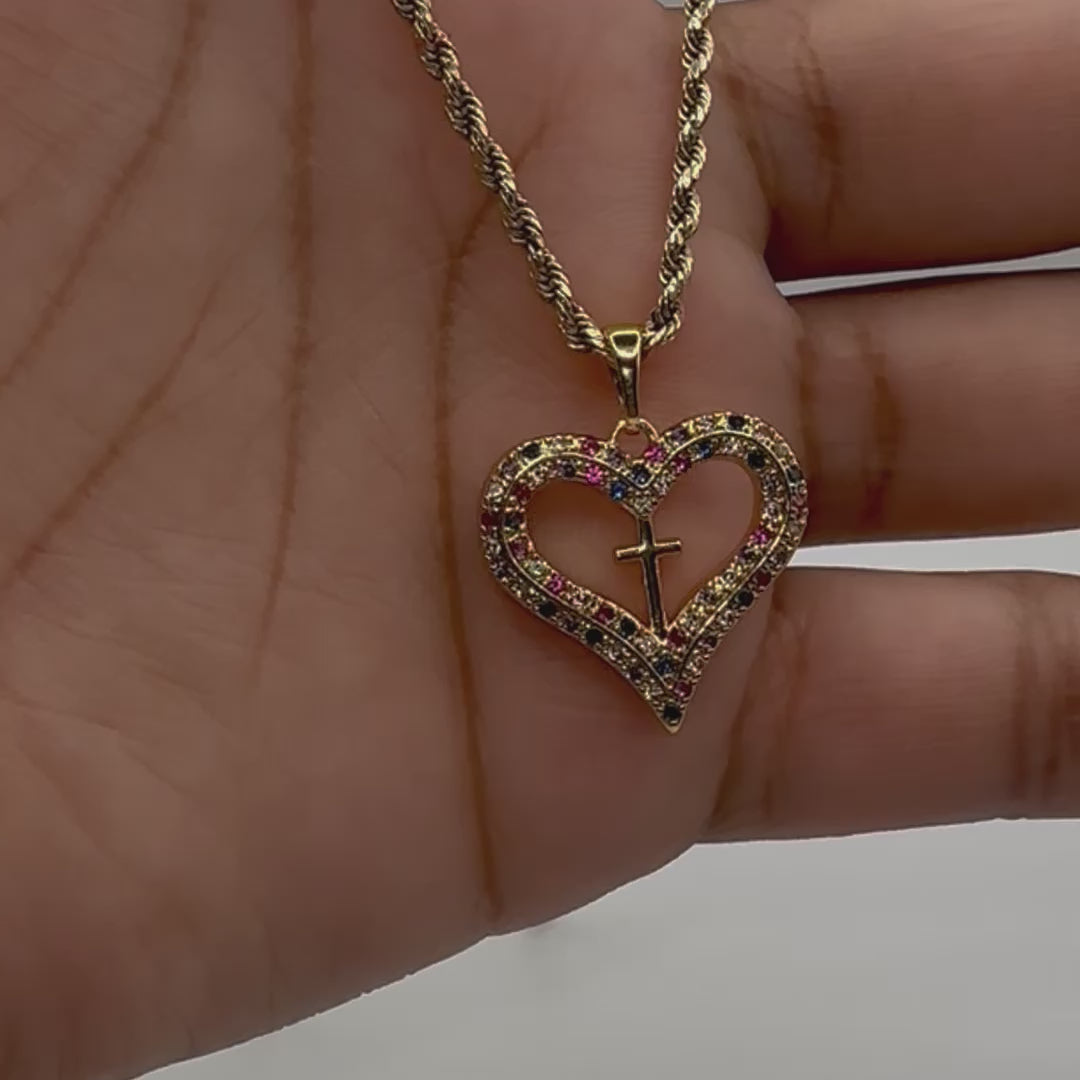 - Plating: 14K Gold Design: Heart outline with cross centerpiece