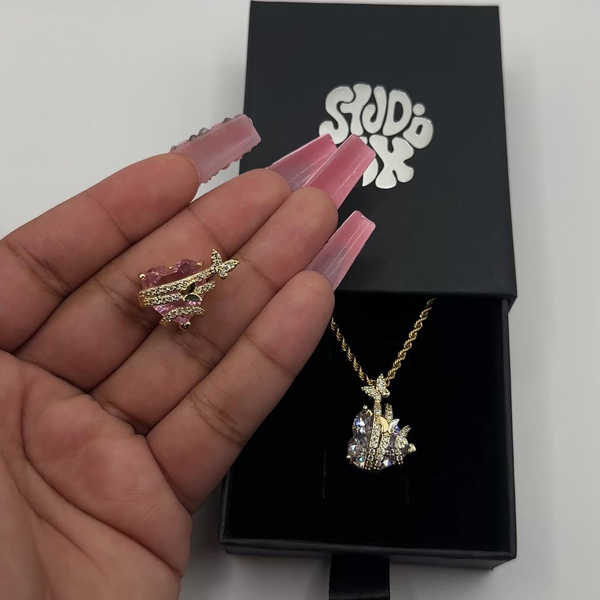 - Stones: High-quality zircon stones (heart-cut center + micro-pavé accents)